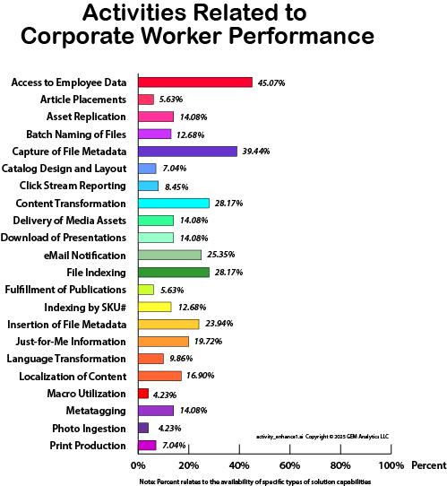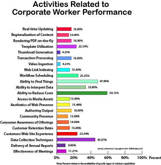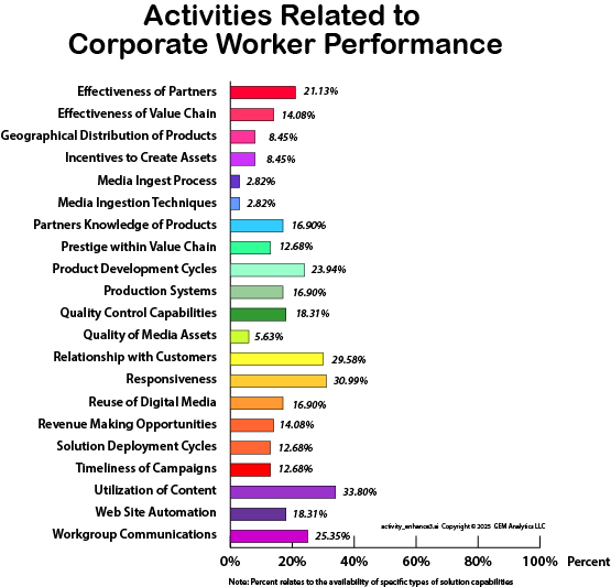Years ago, we knew the day would come when executives everywhere would need to gain access to new kinds of data and information. As pioneers of information technology, we identified need to measure knowledge worker performance to understand the impact that technology and information can have on business performance. To obtain the kind of information executives would need, we knew we would have to collect activity, geographic, and economic data from knowledge workers across all industry and market segments. Since geographic location has a significant bearing on the information we gathered, we knew the data and information had to be global.As we pioneered the Digital Asset Management (DAM) market with leading companies like Apple, IBM, Microsoft, Oracle and hundreds of solution providers throughout the world, we collected data from millions of different types of knowledge workers. To get an idea of the kinds of data collected, check out the data illustrated to the left. What is interesting is that this data dates back 20 years. Now imagine what we have today. The fact that we have been backtesting our data for 30 years should tell you something important. You can't develop valuable insight overnight. Really good data needed to power AI takes years and huges resources to develop.